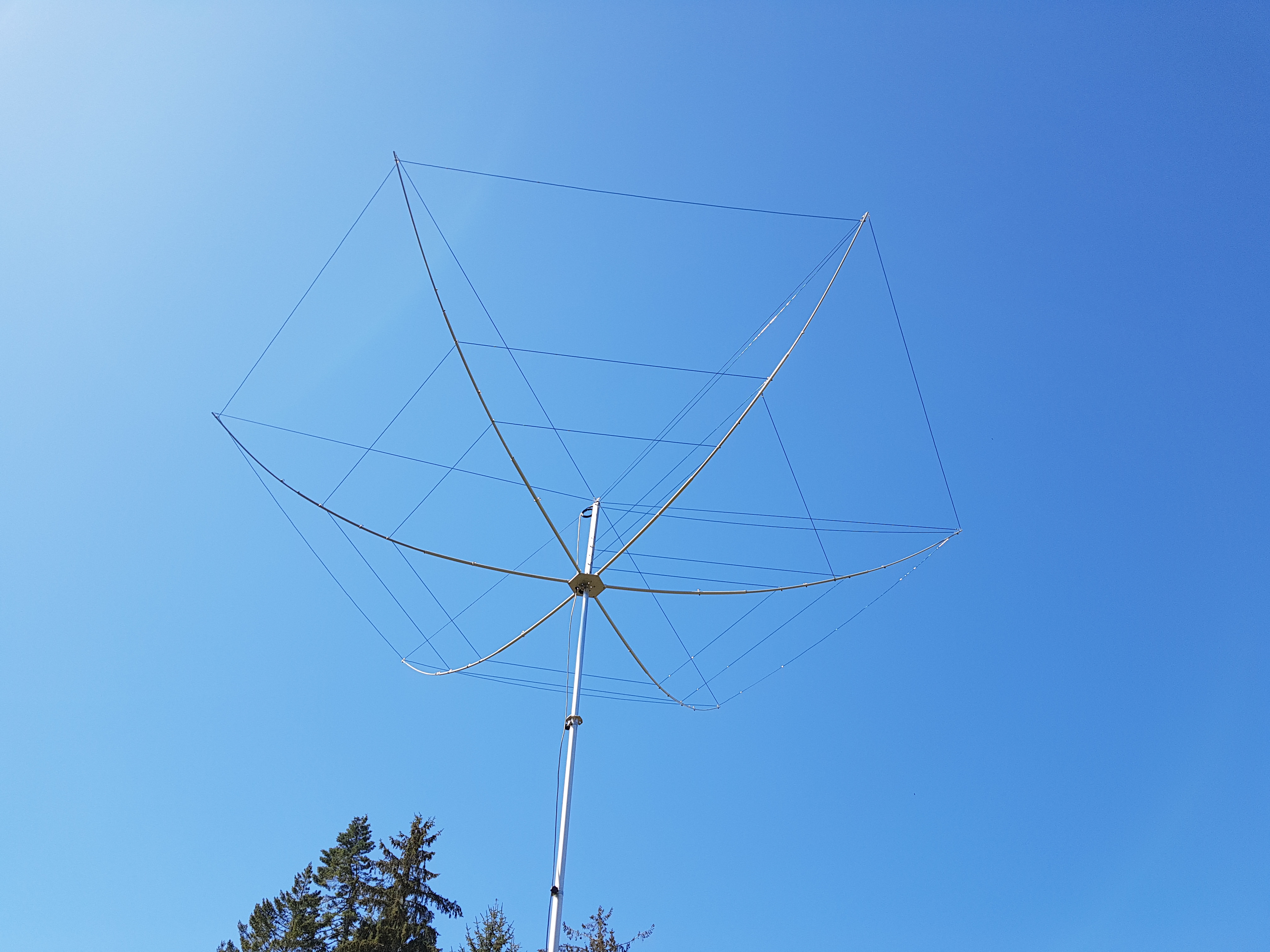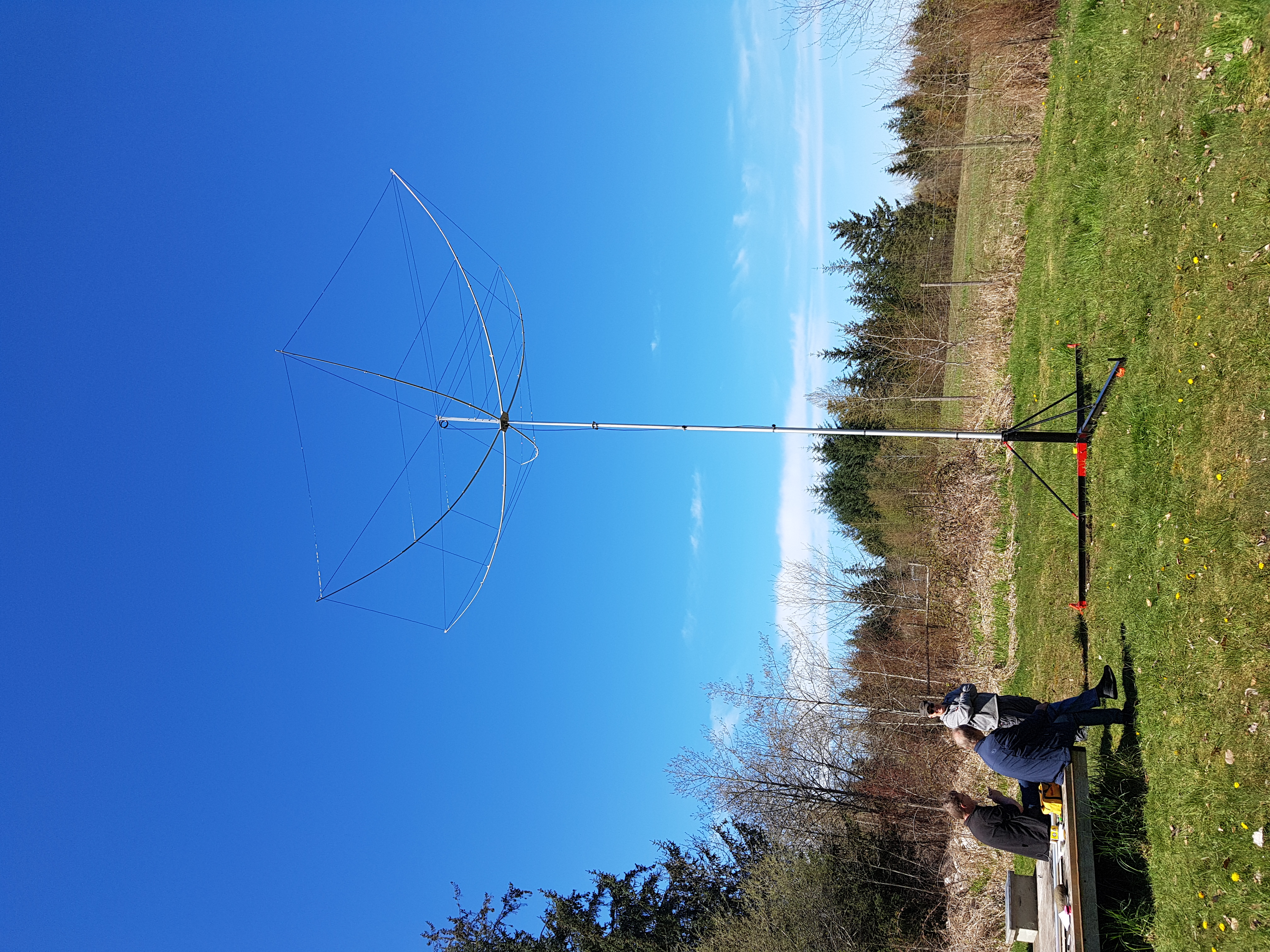 The antenna base was mounted on the collapsible mast and the wires for 20, 15 10 m were put in place.